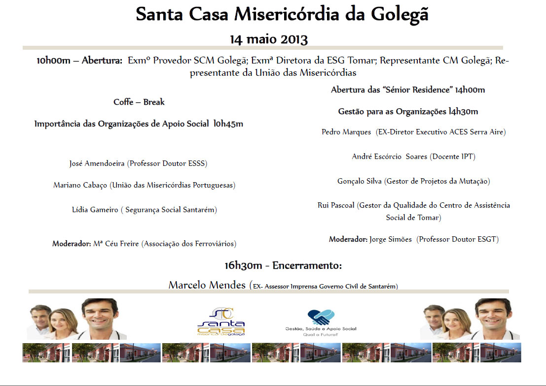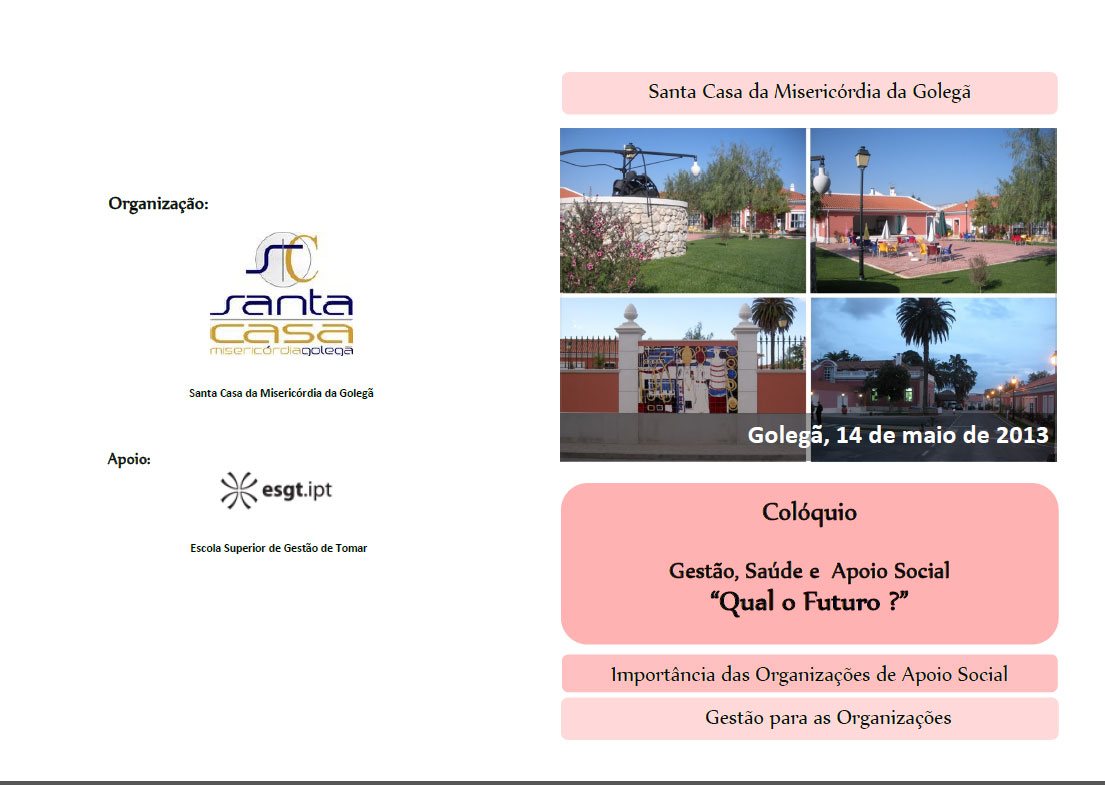 `Gestão, Saúde, Apoio Social - Qual o futuro?` é o colóquio que a Santa Casa da Misericórdia está a organizar e que se realiza no próximo dia 14 de maio, pelas 10h00. Inscrições obrigatórias para geral@misericordiagolega.pt.