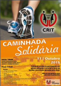 O CRIT está a organizar uma caminhada solidária, que se vai realizar no dia 11 de outubro, pelas 10h00. Solicita-se aos caminhantes um género alimentar a reverter a favor de famílias carenciadas apoiadas pelo Rosto.