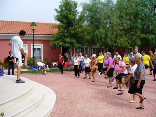 Chegados à Instituição, os participantes encaminharam-se para o Pátio da Nora, um óptimo espaço de lazer, onde sob a orientação do professor José Miguel Riachos, integraram uma animada sessão de ginástica.